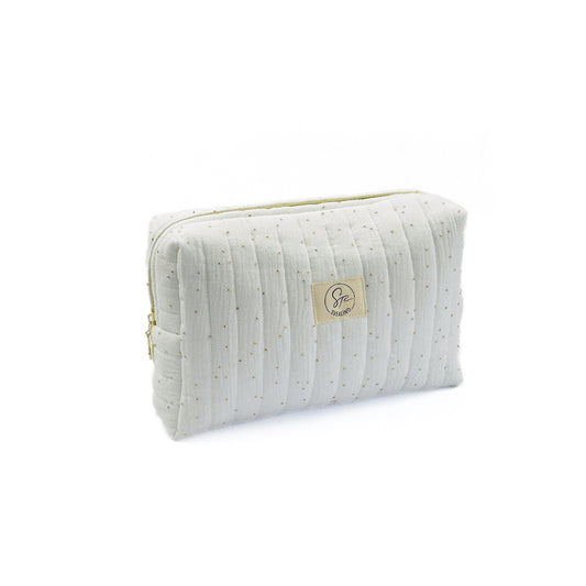Kulturbeutel aus Musselin Double Gauze mit goldenen Punkten