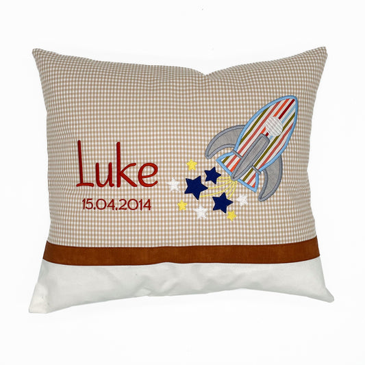 Kissen mit Namen und Motiv Rakete, Größe 35x40cm / 40x50cm