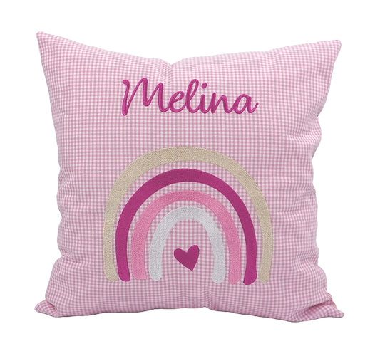 Kissen mit Namen und Motiv Regenbogen, kariertem Baumwollstoff, Größe 40x40cm