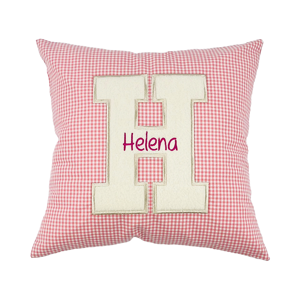 - Kissen bestickt einem großen Buchstaben und Namen