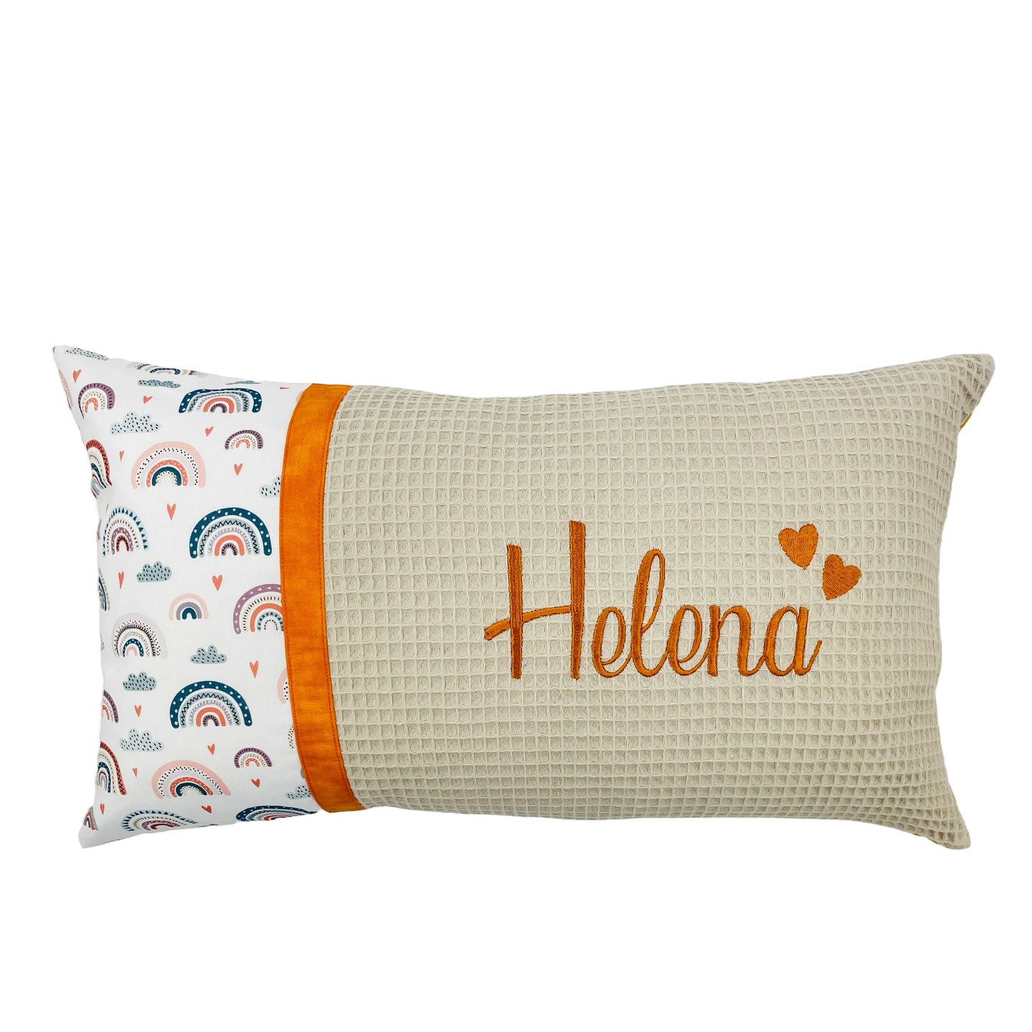 Kissen und Namen und Motivstoff Regenbogen, Größe 30x50 cm
